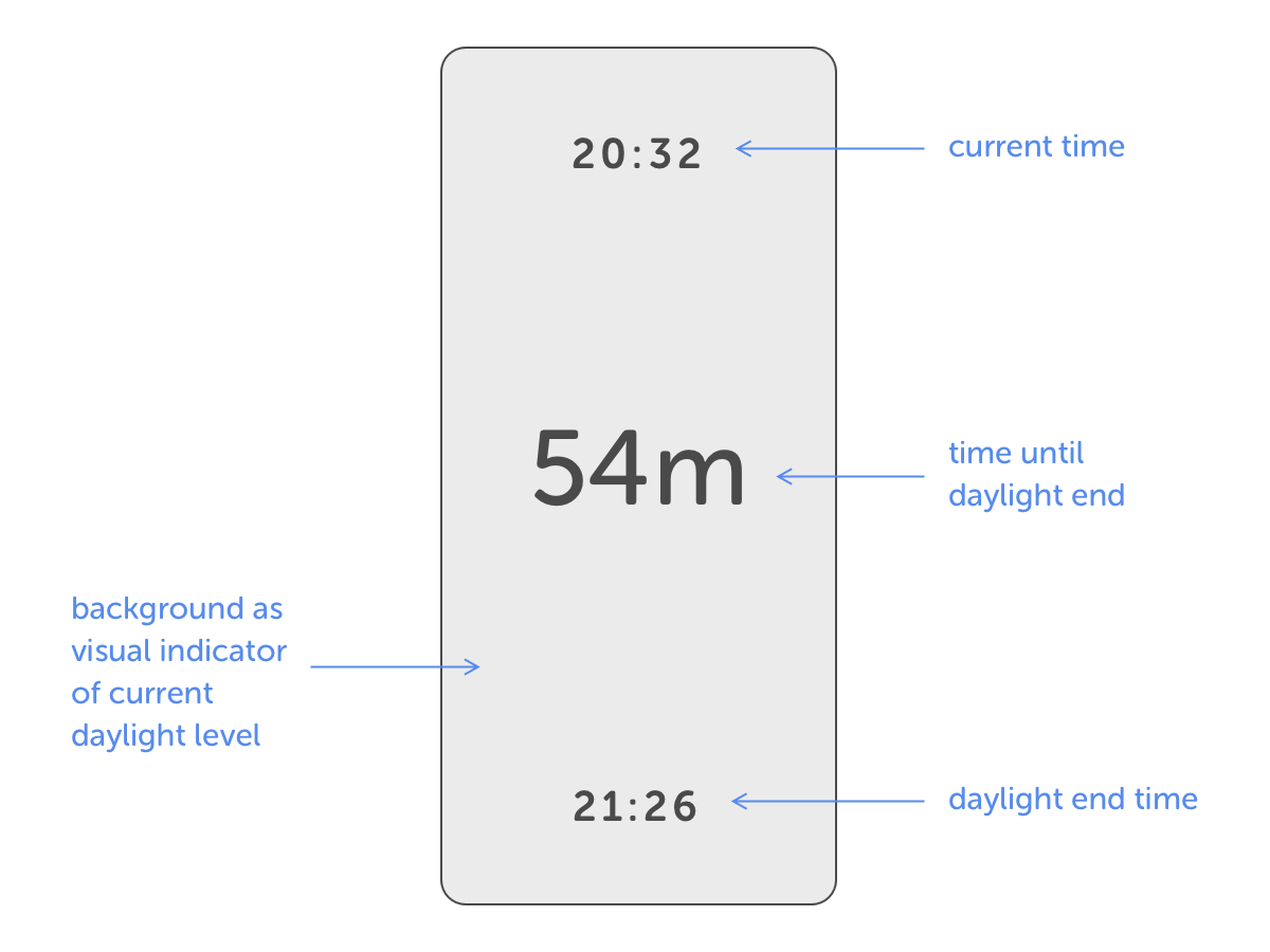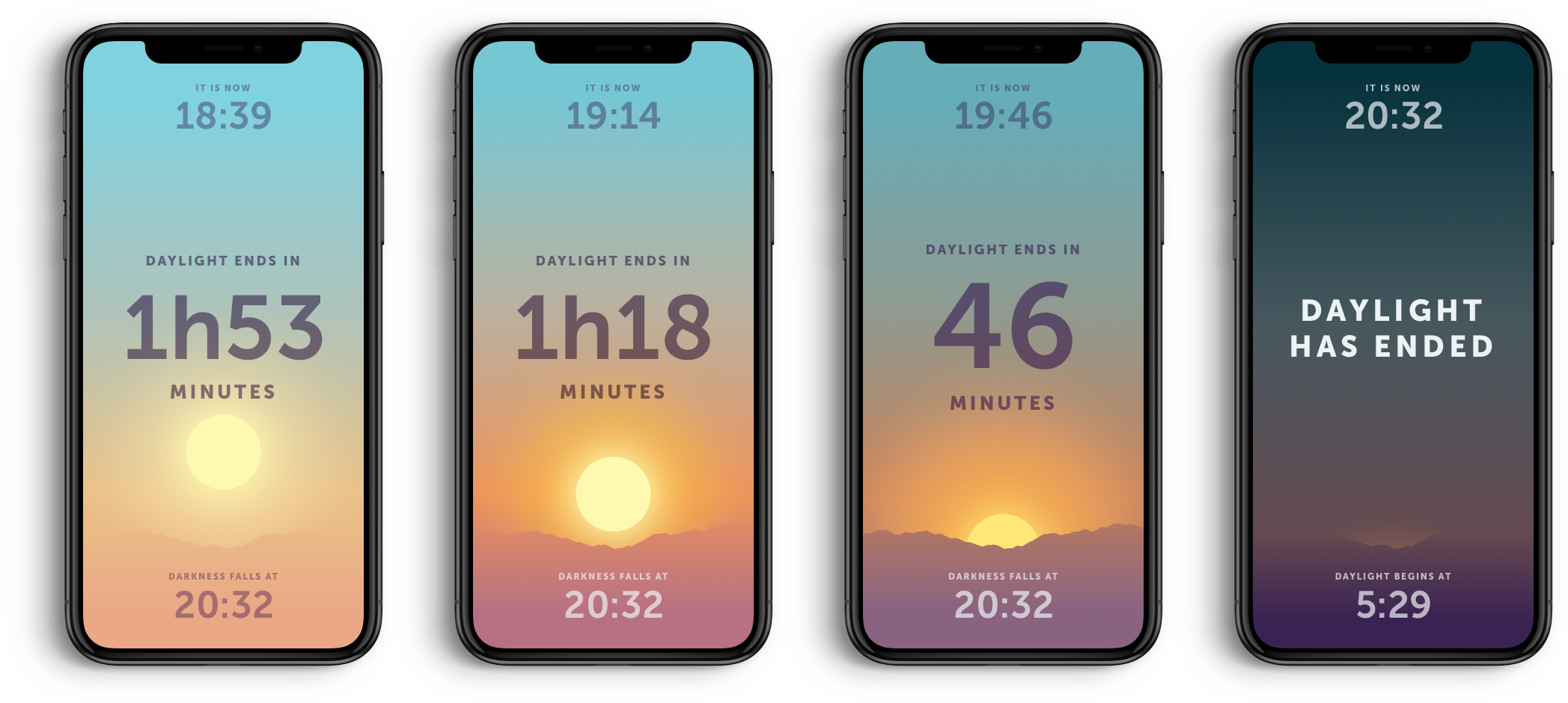 A simple app that shows you how much useful daylight is left to walk to the shops, exercise your dog or avoid local vampires.