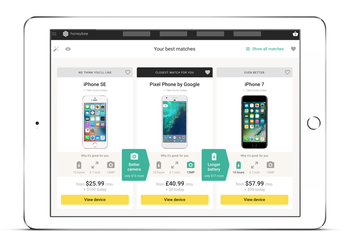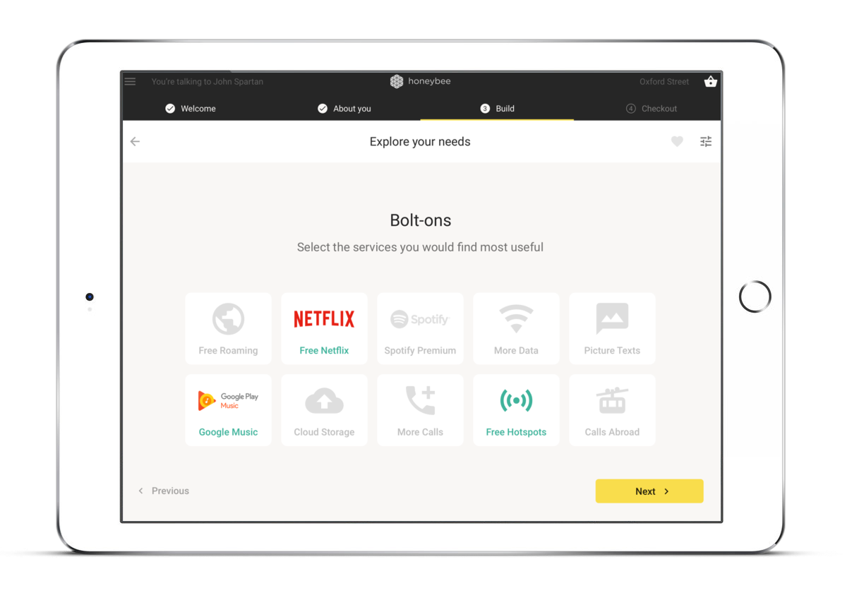 This product was designed to help improve the experience of buying a new phone in-store by walking customers through a series of questions, using an intuitive touch-based interface, to help choose the best product for them.