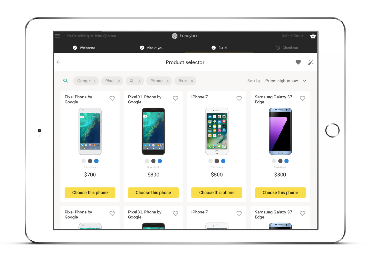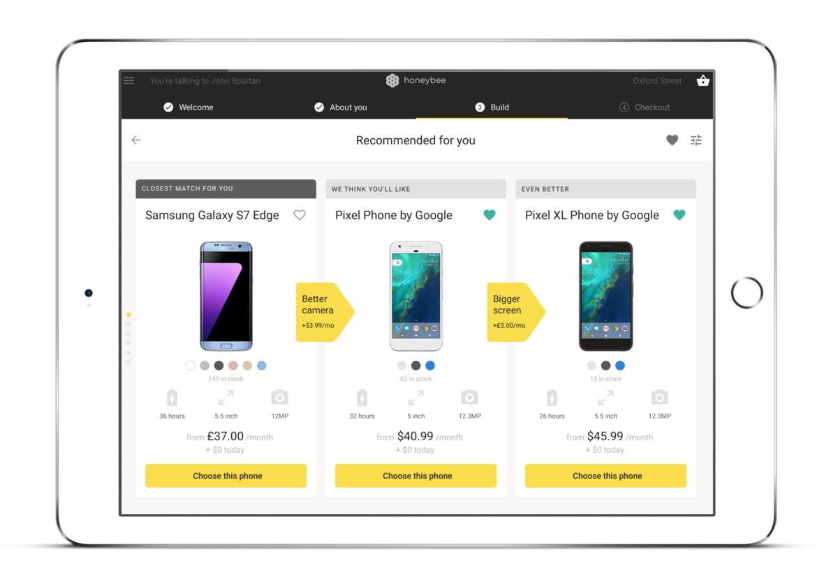This product was designed to help improve the experience of buying a new phone in-store by walking customers through a series of questions, using an intuitive touch-based interface, to help choose the best product for them.