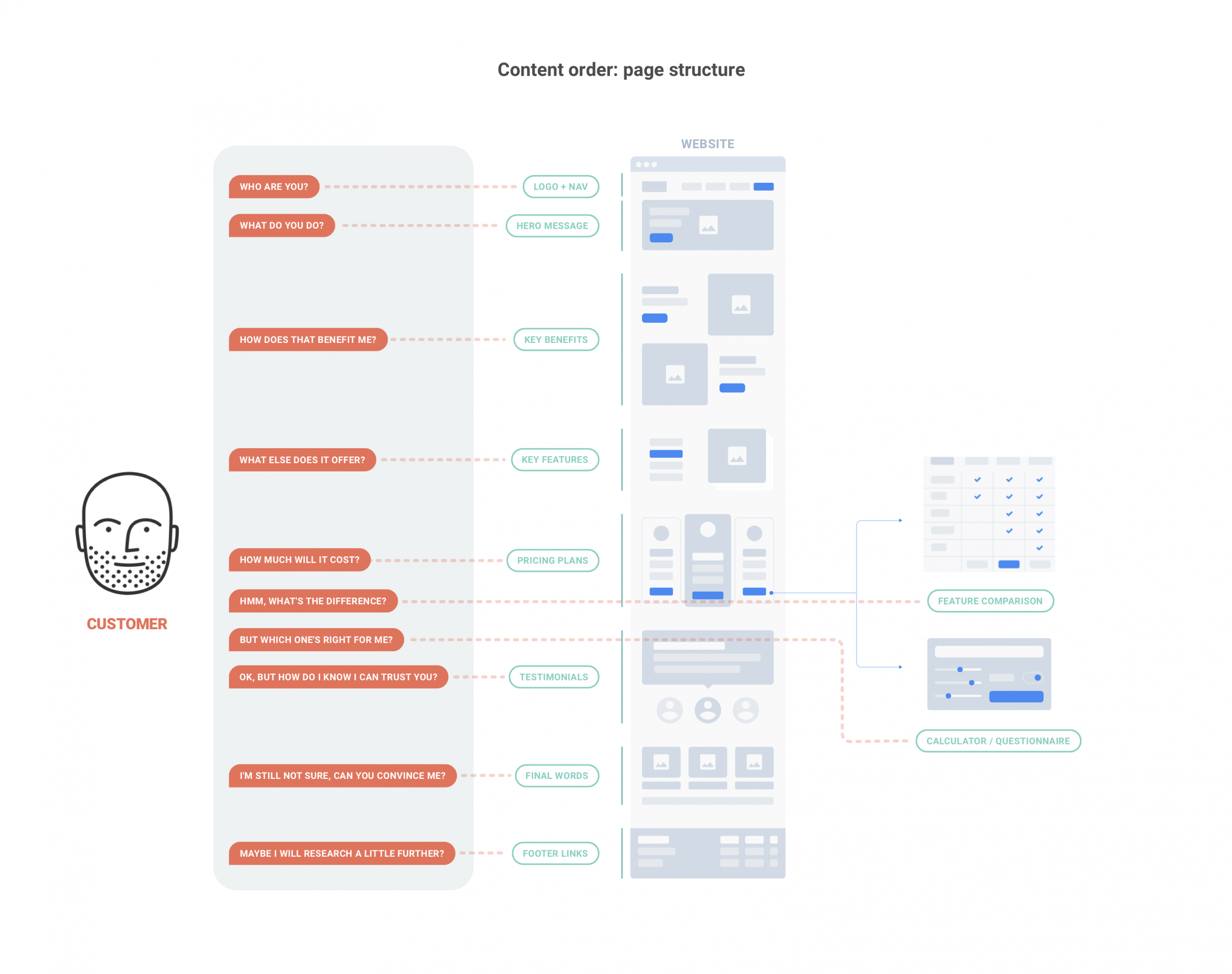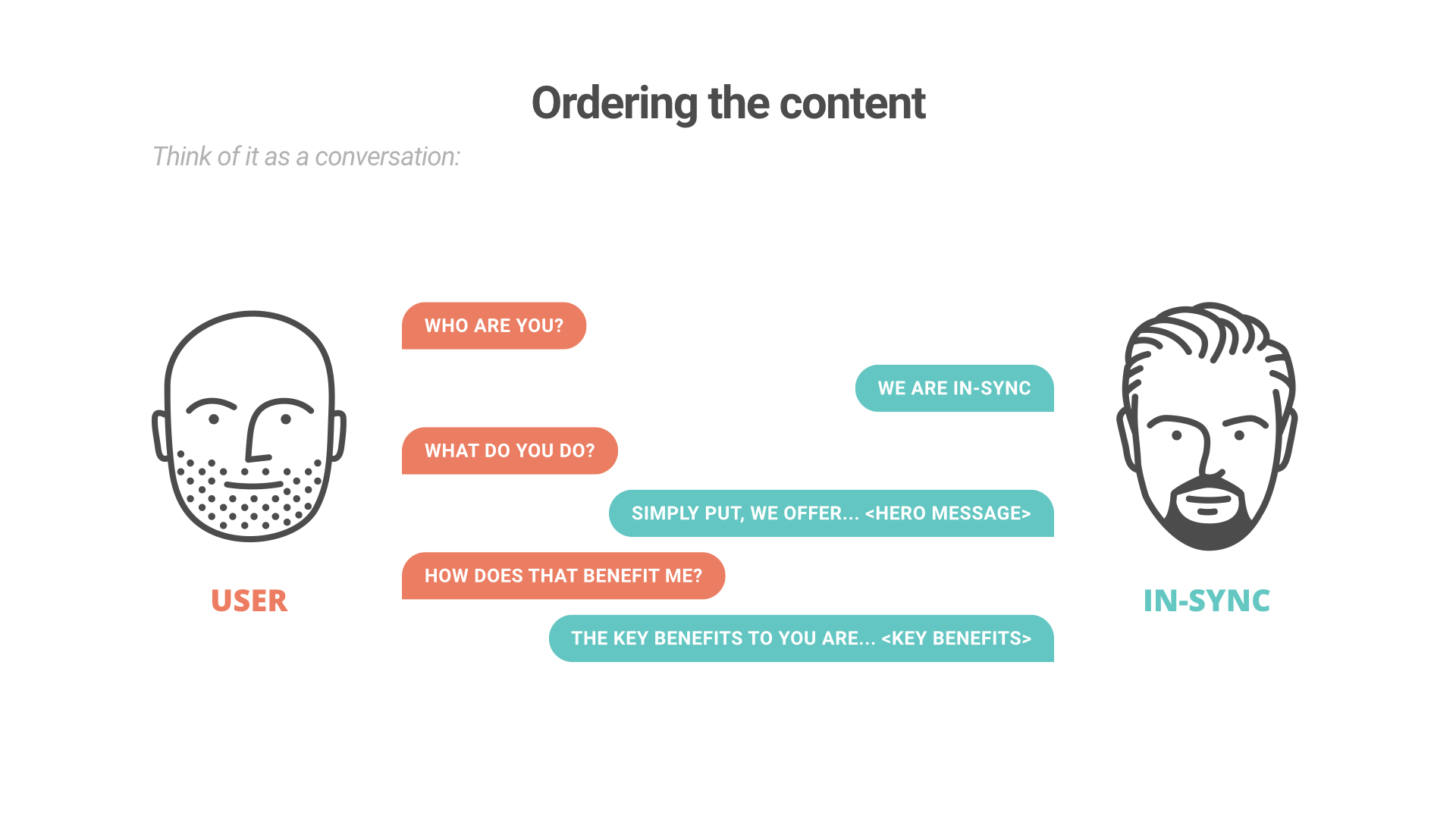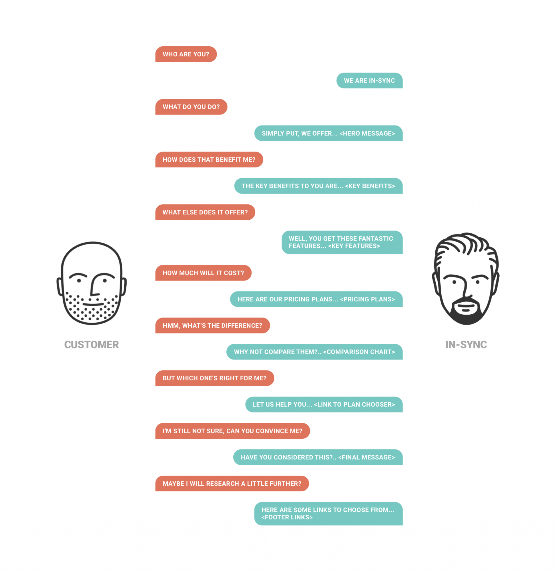 To better understand this journey I scripted out a conversation as if the customer were inquiring about the company through a conversation (focusing on the most important issues). This then helped us to structure the landing page in a way that would answer the customer’s questions and lead them all the way through to signing up or getting in touch.
