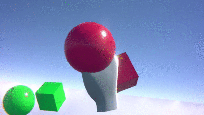 I also added some spheres to the mix and colour-coded the objects: green for pull and red for push.