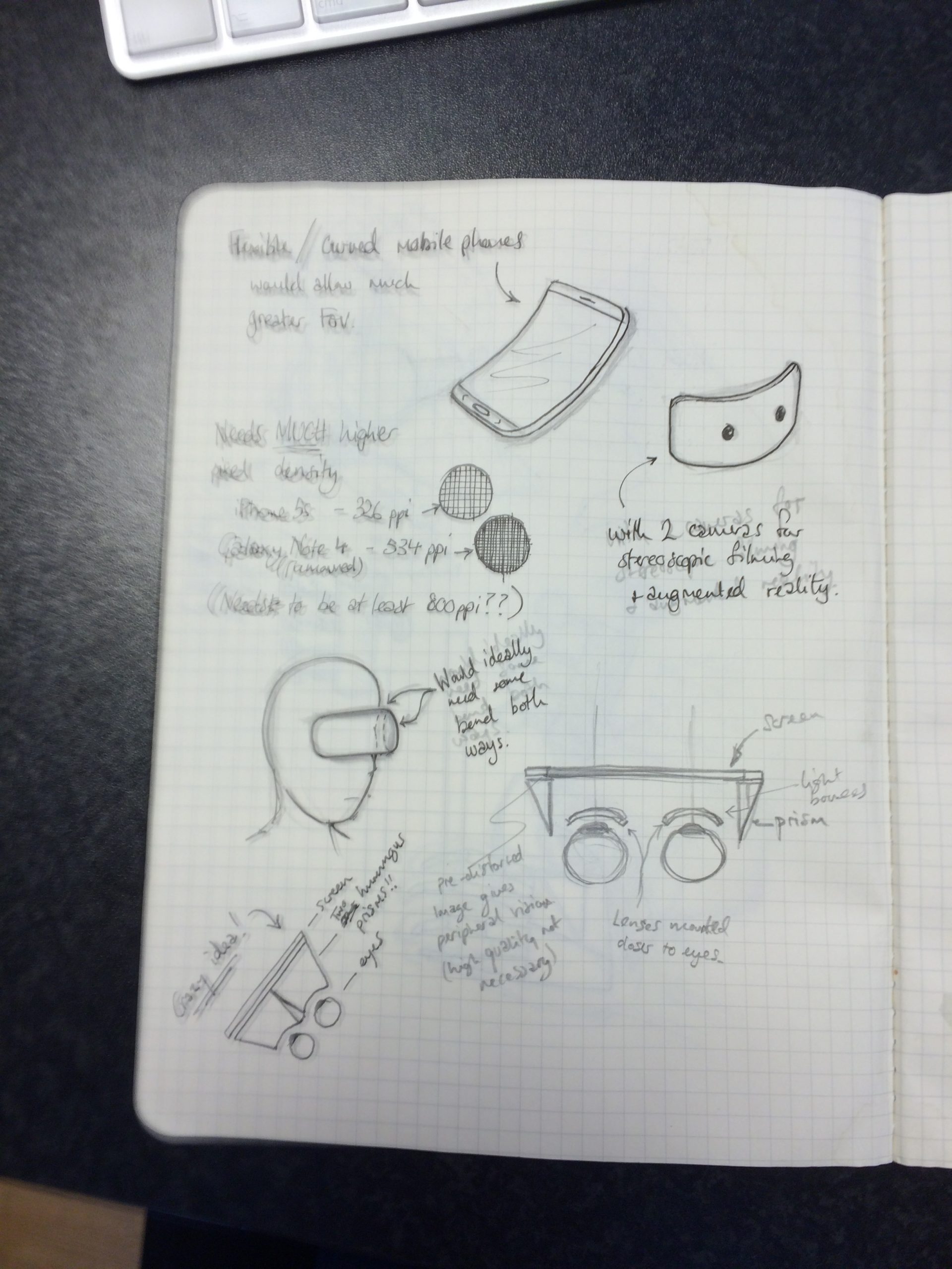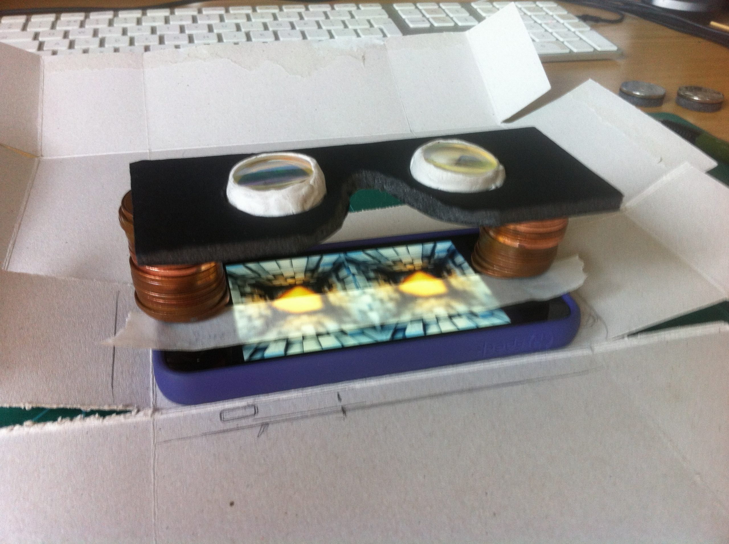 This allowed me to play with experiments in Unity as if I were developing for a PC-based HMD such as the Rift [albeit with rather noticeable lag and horrendously large pixels – horray for imagination!].